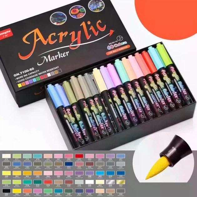Набір акрилових маркерів 60 кольорів універсальні guangna gn 7101 на водній основі фломастери для малювання на папері склі д