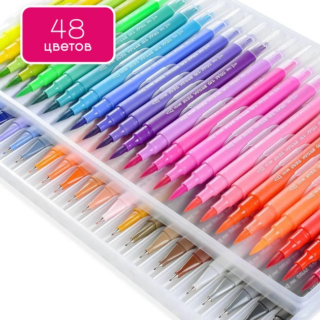 Двосторонні лінери-пензлі FaiArts 48 кол. - кольорові, на водній основі для скетчингу та малювання