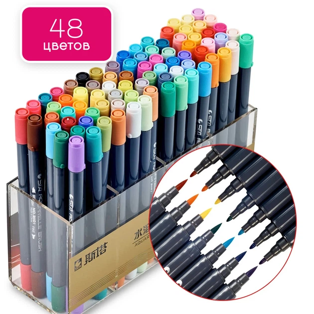 Набір двосторонніх акварельних маркерів для малювання на водній основі STA 48 кольорів, маркери для малювання на водній осно