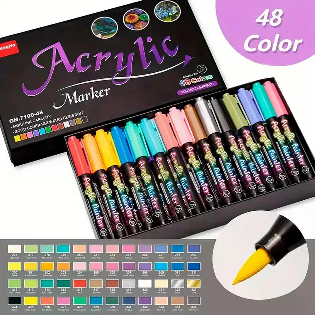 Набір акрилових маркерів 48 кольори універсальні guangna gn 7101 на водній основі фломастери для малювання на папері склі де