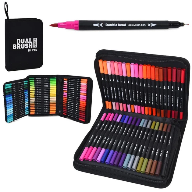 Набір маркерів акварельних двосторонніх 80 шт DW-80 у пеналі 0.4-2 мм