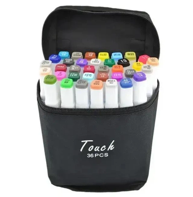 Набір двосторонніх маркерів для малювання Touch 36шт для скетчингу на спиртовій основі з чохлом сумкою