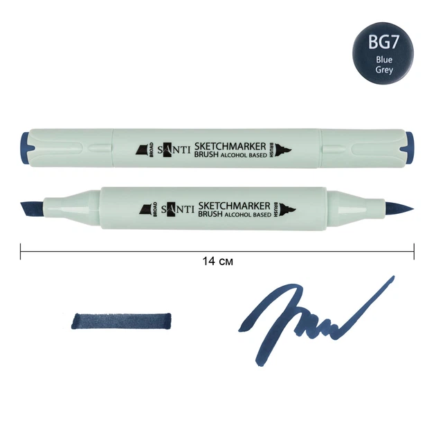 Маркер спиртовий SANTI Brush SA-BG7 синє-сірий 7