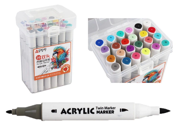 Набір скетчмаркерів акрилових двосторонніх Aodemei 24 кольори у пластиковому боксі 6141-24M