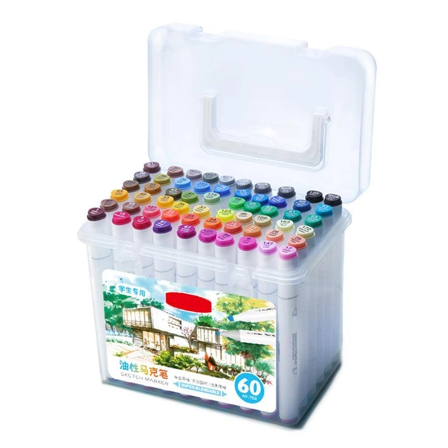Набір двосторонніх маркерів для малювання та скетчингу у пластиковому боксі 60 кольорів