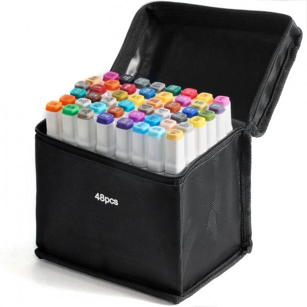 Набір двосторонніх маркерів UKC для скетчинга 48 шт в чохлі Різнокольорові