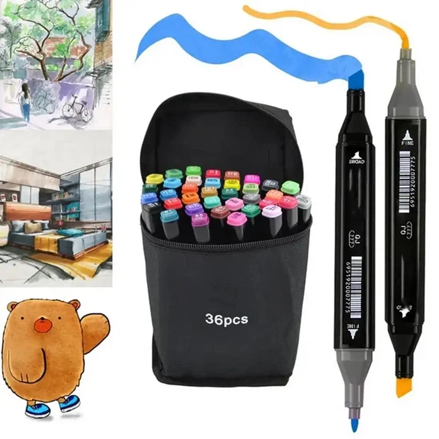 Набір різнокольорових маркерів для скетчингу 36 шт Двосторонні спиртові маркери з цифровим кодом Яскраві скетч-маркери для м
