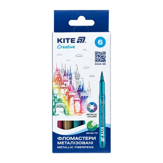 Набір фломастерів Kite Creative 1-5 мм 6 шт брашеві металізовані кольори (K-1149)