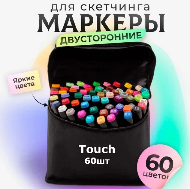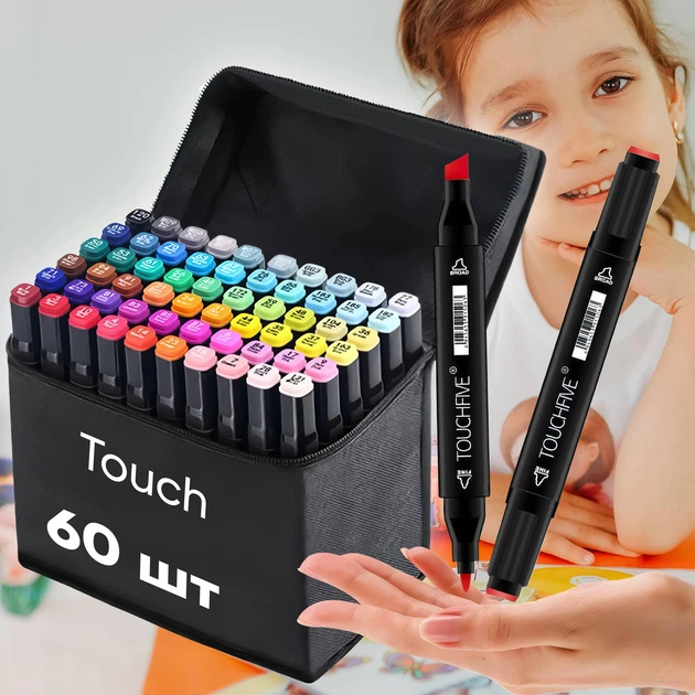 Двосторонні маркери для малювання, набір скетч маркерів Touch 60 кольорів.