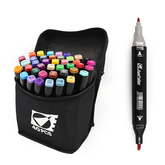 Набір двосторонніх маркерів для малювання Touch 40шт для скетчингу на спиртовій основі з чохлом сумкою
