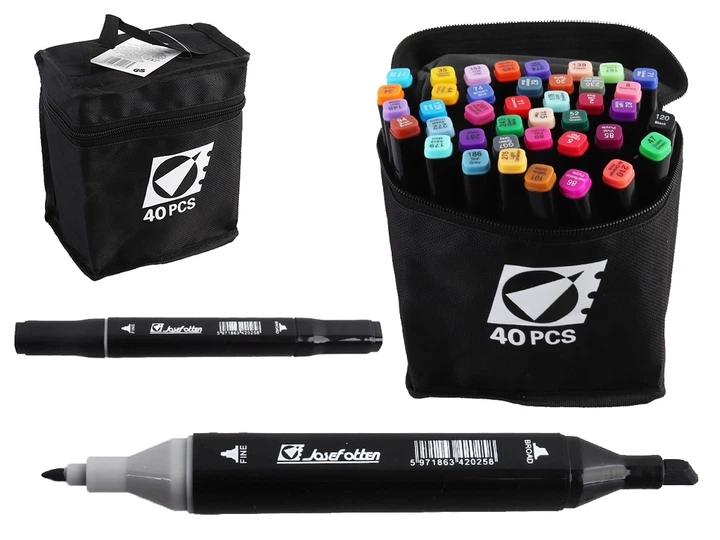 Набір скетчмаркерів двосторонніх, 40 шт., 40 кольорів, круглий/скошений наконечник, у сумці