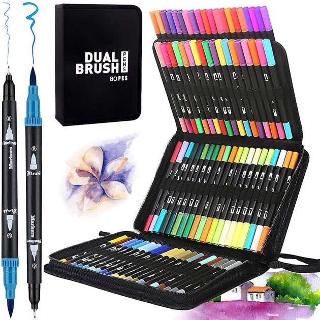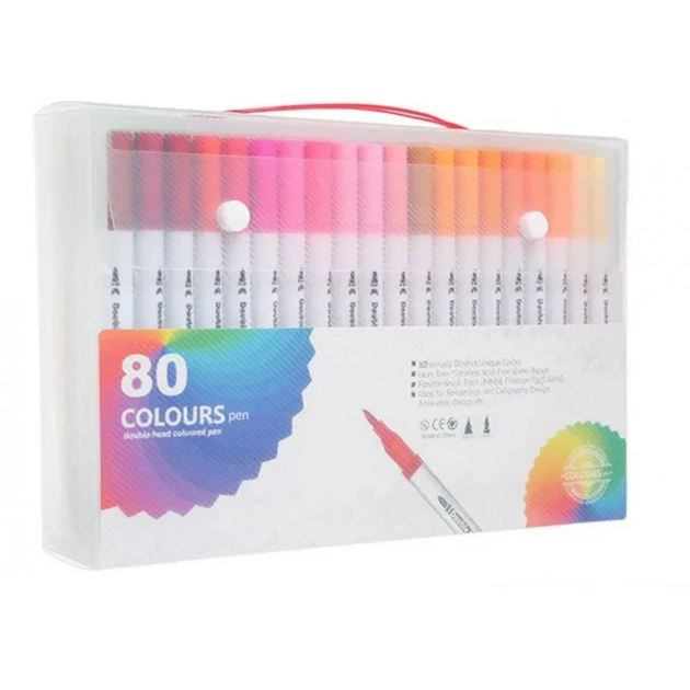 Набір акварельних маркерів-лінерів для малювання Dual Brush 80 шт / Комплект двосторонніх скетч маркерів на водній основі в