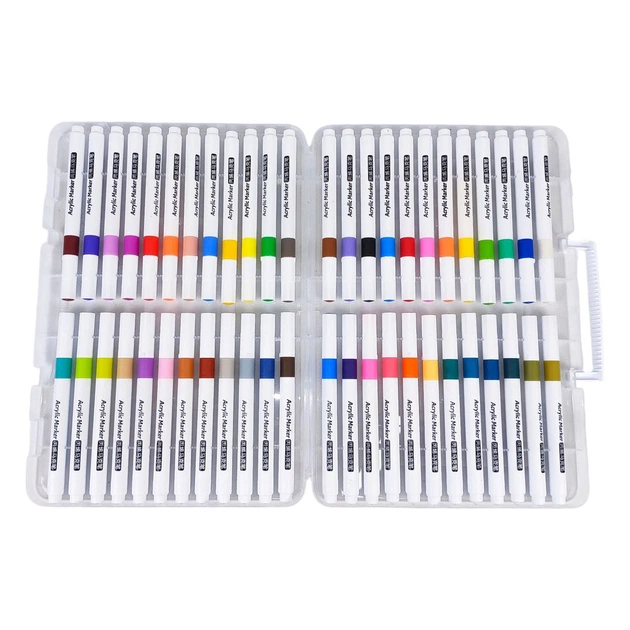 Професійні акрилові маркери 48 кольорів у кейсі для зберігання, яскраві кольори, фломастери для малювання на папері, футболк