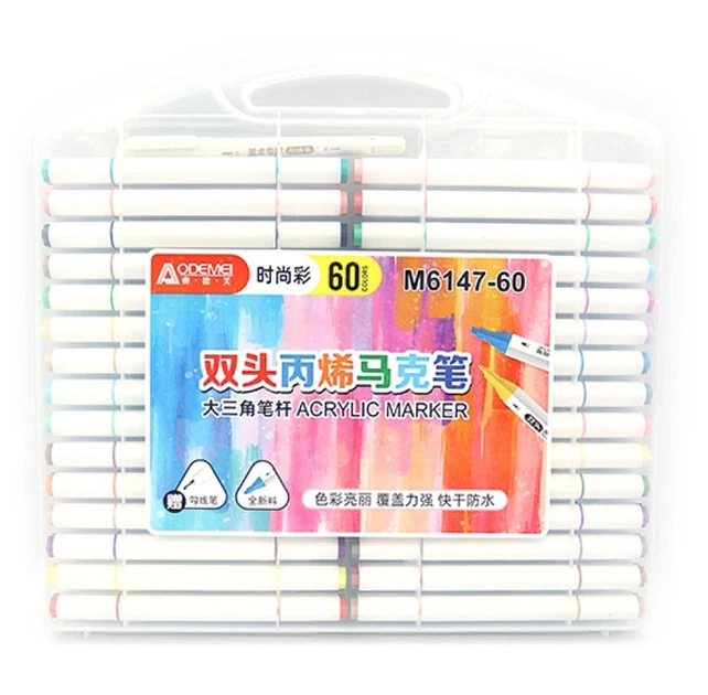 Набір акрилових маркерів Aodemei двосторонні 60шт 6147-60 у пластиковому футлярі