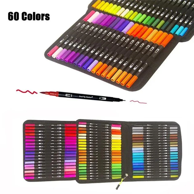 Набір акварельних двосторонніх скетч-маркерів для малювання Dual brush, 60 шт, професійні фломастери для художників у чохлі