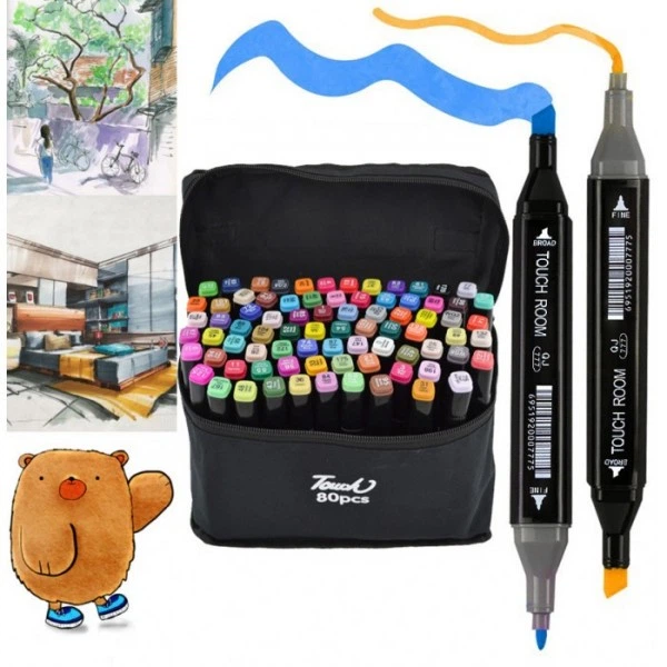 Двосторонні скетч маркери Sketch Marker TouchFIVE в чохлі, набір 80 кольорів маркерів