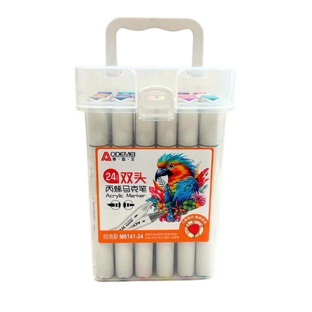 Маркери акрилові Aodemei Acrylic Marker набір 24шт двосторонні 6140-24