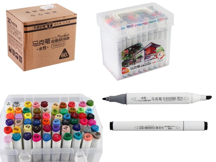 Набір двосторонніх маркерів на водній основі 60шт / Маркери для скетчингу / Маркери для малювання / Маркери