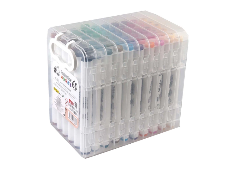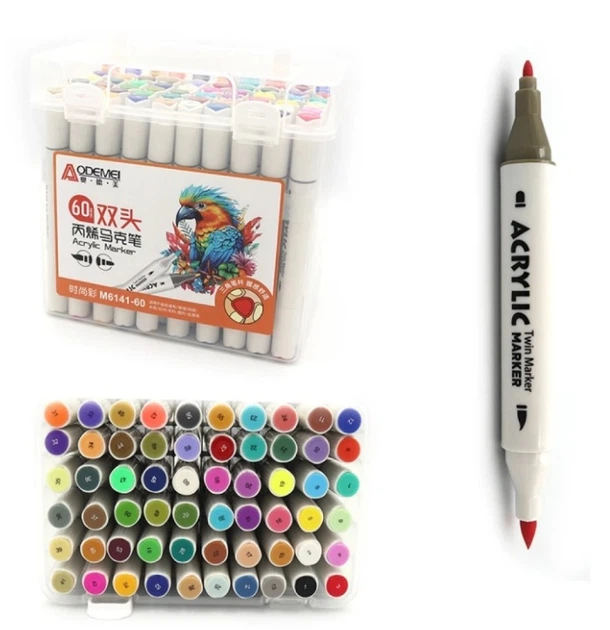 Набір акрилових двосторонніх маркерів 60 штук Aodemei, пластиковий бокс M6141-60