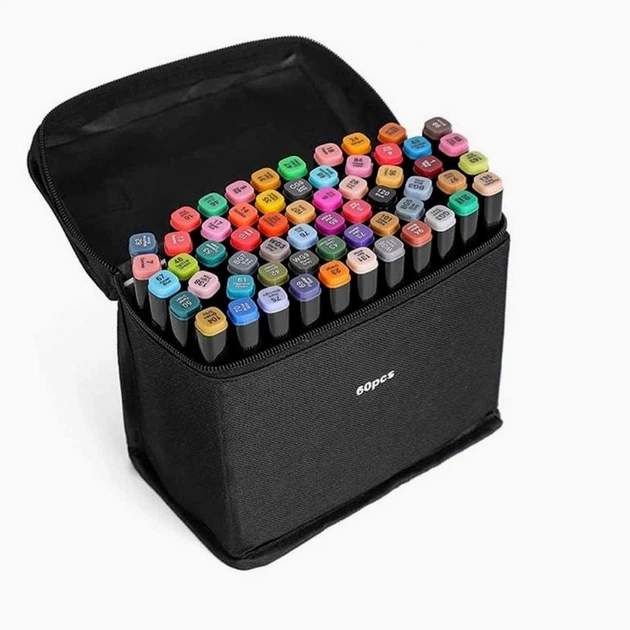 Набір маркерів для малювання 60 шт. двосторонні спиртові для паперу різні кольори в сумці