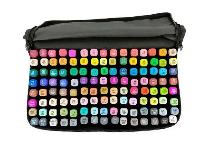 Маркери для скетчингу набір скетч маркери фломастери за номерами для скетчбука в сумці-чохлі 120 кольорів спиртові двосторон
