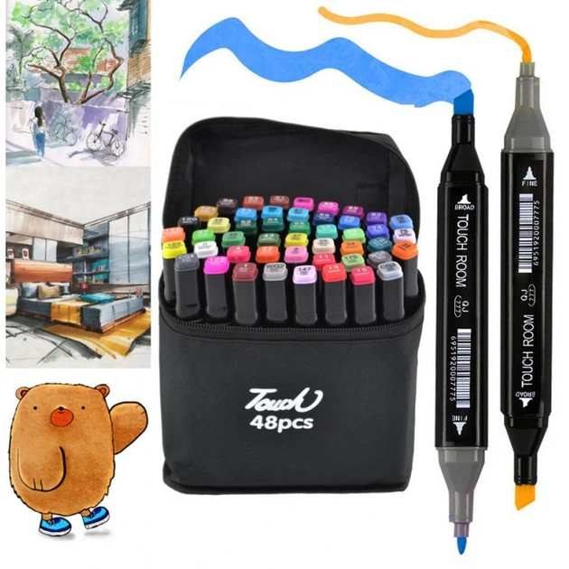 Набір двосторонніх маркерів для скетчингу та малювання на спиртовій основі Touch Qiuci 48 шт