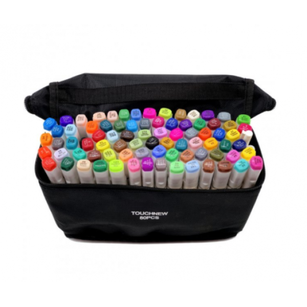 Набір якісних маркерів для скетчингу Touch Smooth 80 кольорів у чорній сумці