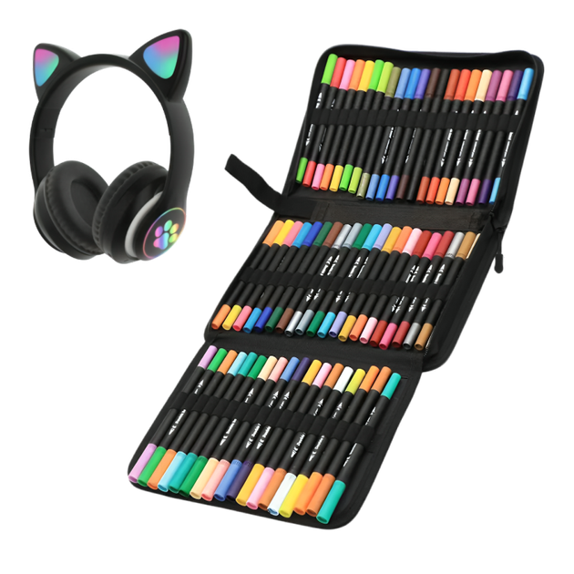 Комплект набір двосторонніх акварельних скетч маркерів у чохлі кейсі 60 штук з бездротовими блютуз навушниками (481878-Prob)
