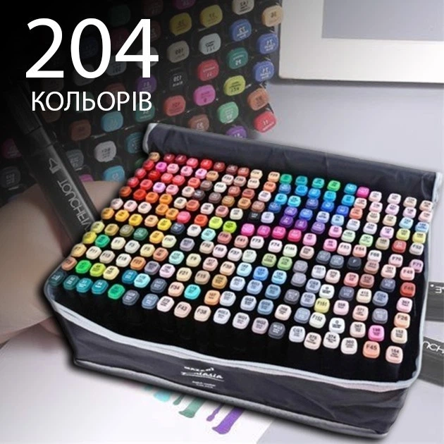 Набір скетч-маркерів 204 шт для малювання двосторонніх Touch