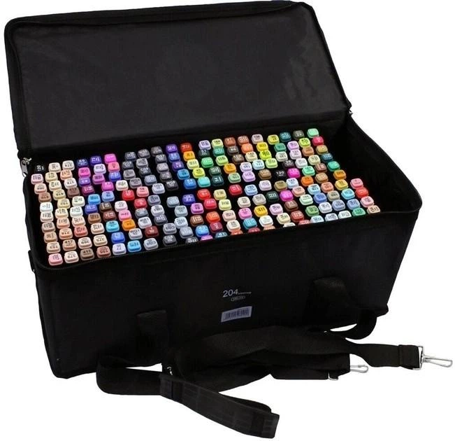 Набір двосторонніх скетч маркерів 204 штуки Touch Cool, на спиртовій основі, чорний корпус у сумці