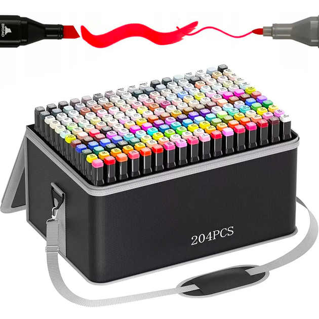 Набір скетч-маркерів 204 шт. для малювання двосторонніх touch
