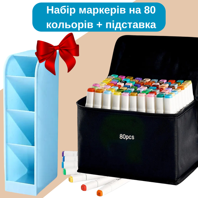 Маркери Touch Smooth набір 80 шт двосторонні спиртові для скетчингу з підставкою для маркерів блакитна