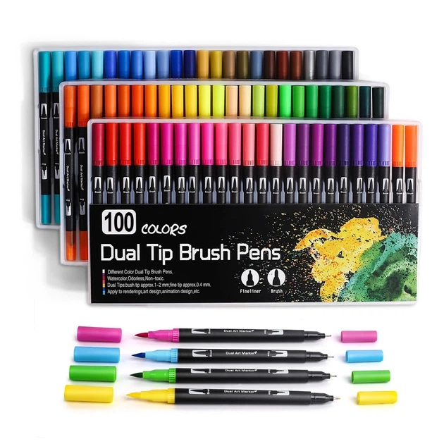 Набір акварельних маркерів Brush для скетчингу, малювання 100 кольорів, акварельні двосторонні маркери Brush