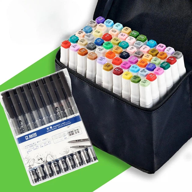 Маркери двосторонні Touch 80 кольорів і набір лайнерів 9 шт для ескізів і скетчів