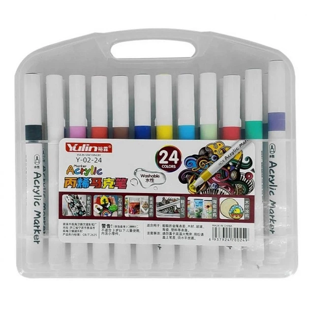 Набір акрилових маркерів 24 кольори в пластиковому боксі акрилова водостійка фарба товщина лінії 1-3 мм