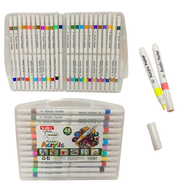 Маркери універсальні акрилові Yulin Acrylic Marker набір 48 шт Y-04-48 у пластиковому футлярі
