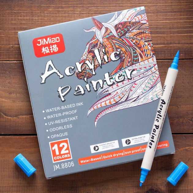 Маркери акрилові 12 кольорів набір двосторонні на водній основі Jimiao