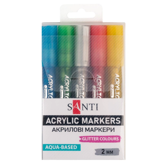 Набір акрилових маркерів Santi Glitter 391029 5 шт 4917641