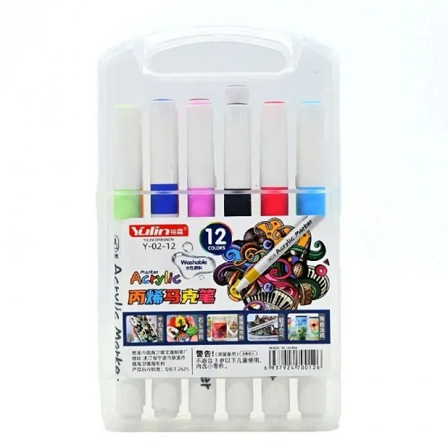 Набір акрилових маркерів 12 кольорів у пластиковому боксі водостійка фарба товщина лінії 1-3 мм