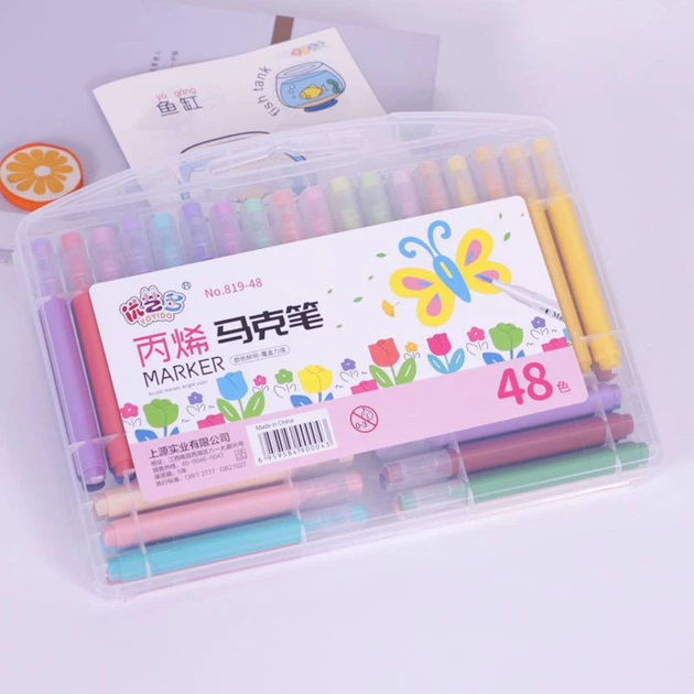 Набір акрилових маркерів 48 шт для малювання та творчості, маркери для тканини, дерева та кераміки в пластиковому кейсі JH-A