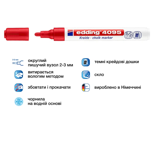 Маркер крейдяної Edding Window для вікон 2-3 мм клиновидний Червоний (e-4095/02)