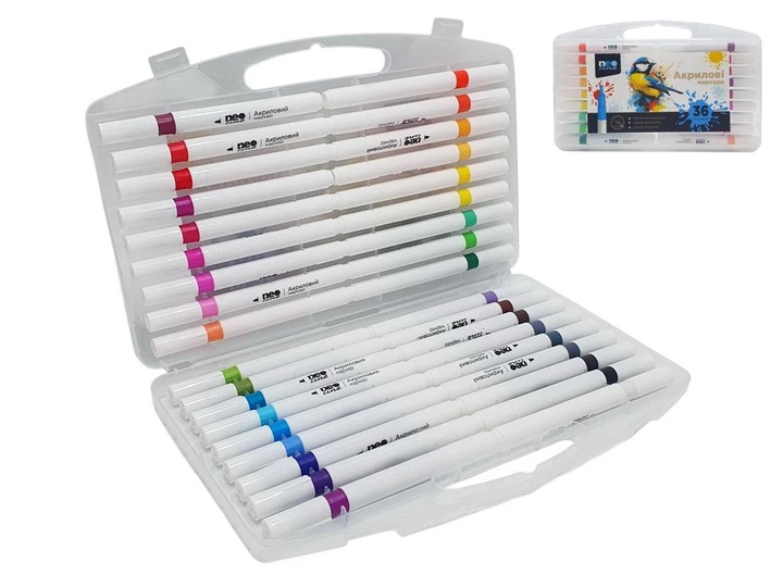 Акрилові маркери для малювання Neo Line набір 36 кольорів - універсальні маркери для розпису гільз, дерева, скла, металу, пл