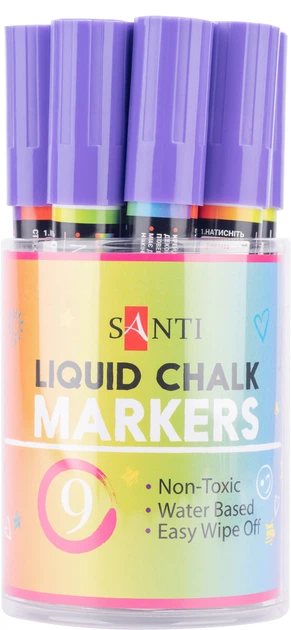 Набір крейдяних маркерів Santi ФІолетових 5 мм 9 шт (390616)