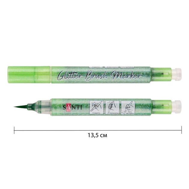 Маркер акварельний SANTI Glitter Brush, кисть, 10, трав'яно-зелений