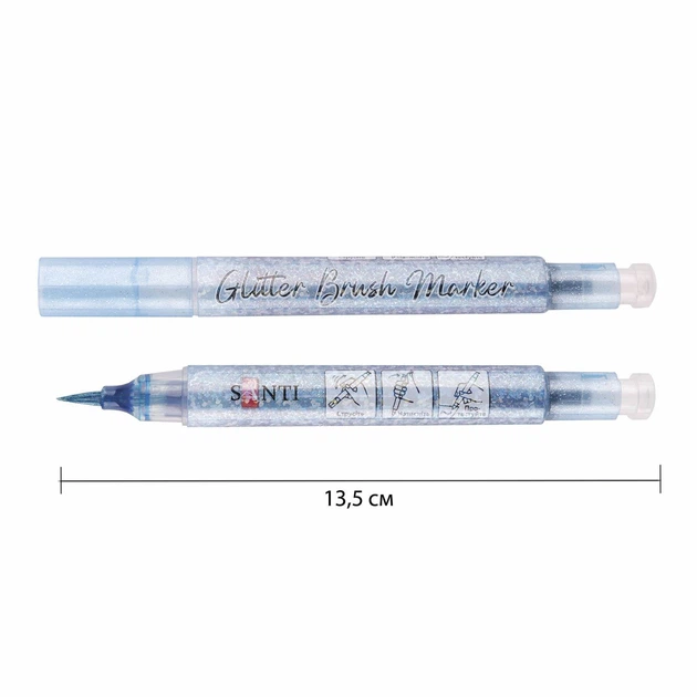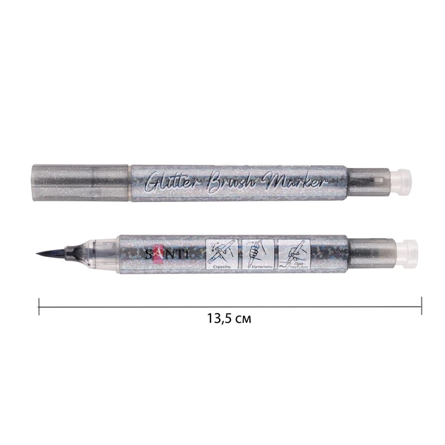Маркер акварельний SANTI Glitter Brush, кисть, 04, срібний