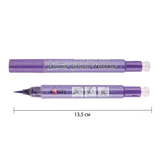 Маркер акварельний SANTI Glitter Brush, кисть, 07, пастельно-фіолетовий