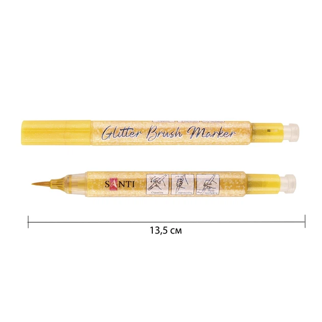 Маркер акварельний SANTI Glitter Brush, кисть, 13, золотий