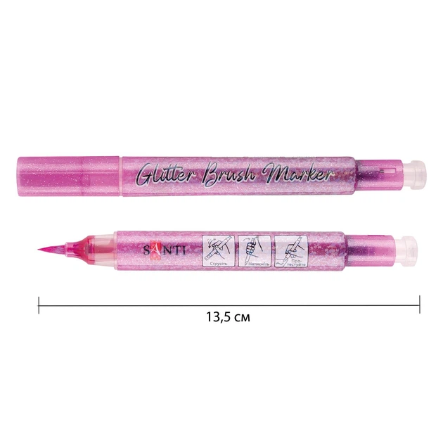 Маркер акварельний SANTI Glitter Brush, кисть, 18, світло-рожевий