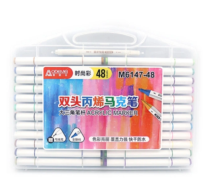 Набір акрилових маркерів Aodemei двосторонні 48шт 6147-48 у пластиковому футлярі