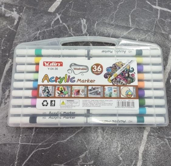Набір яскравих професійних акрилових маркерів для творчості 36 одиниць в пластиковому боксі